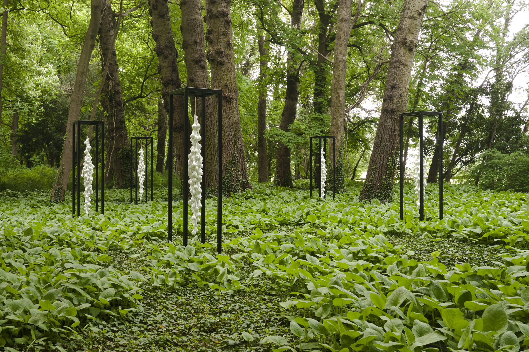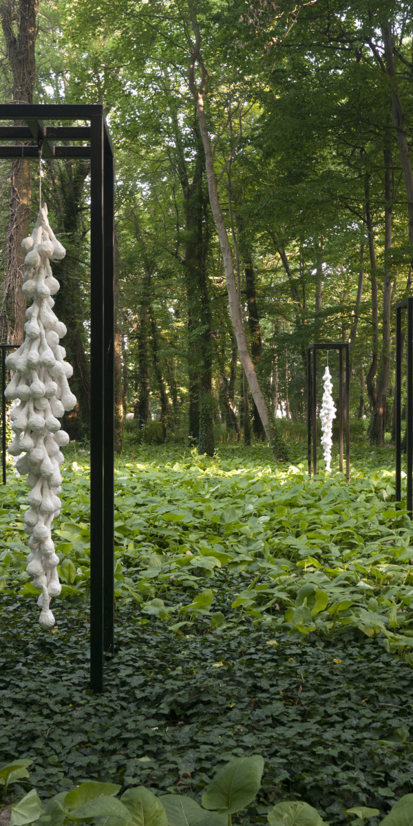 この彫刻は、「Cosmos (outdoor) No.01」と同じく、ドイツ、ブランデンブルグ州で開催された野外彫刻展「ランドアート・シュロスパーク・ヴァーゲニッツ」に出品した作品です。このプロジェクトは、ブランデンブルク州ハーフェルランど郡およびベルリンのSemjon Contemporaryと協力して約3年間にわたり実現されました。約6ヶ月間の展示中、2週間おき同じアングルから作品を撮影しました。4月頃は地面がまだ土の色で覆われていましたが、夏になると緑の絨毯に変化し、そして秋には落ち葉が舞い降り黄色一面の景色に変わりました。